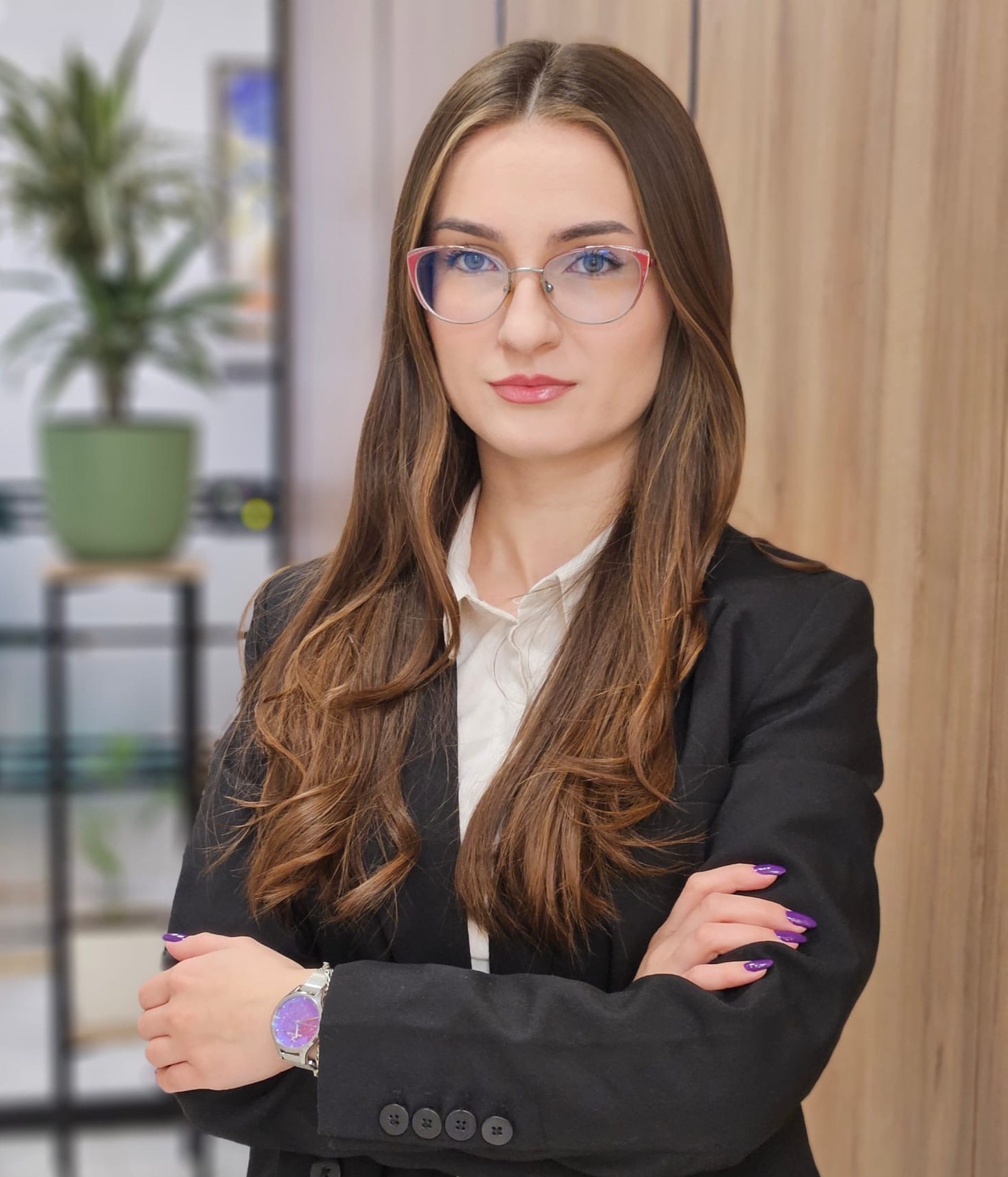 Иднината со младите е секогаш правилна одлука, затоа што тоа ни го докажа Јована. Брза, вредна, исполнителна и одговорна. Сака динамична работа и разноликост, подготвена е да превзема ризик и да носи одлуки. За неа нема лимит и не се вклопува во стереотипи, затоа што знае дека модерното време во адвокатурата допрва доаѓа.